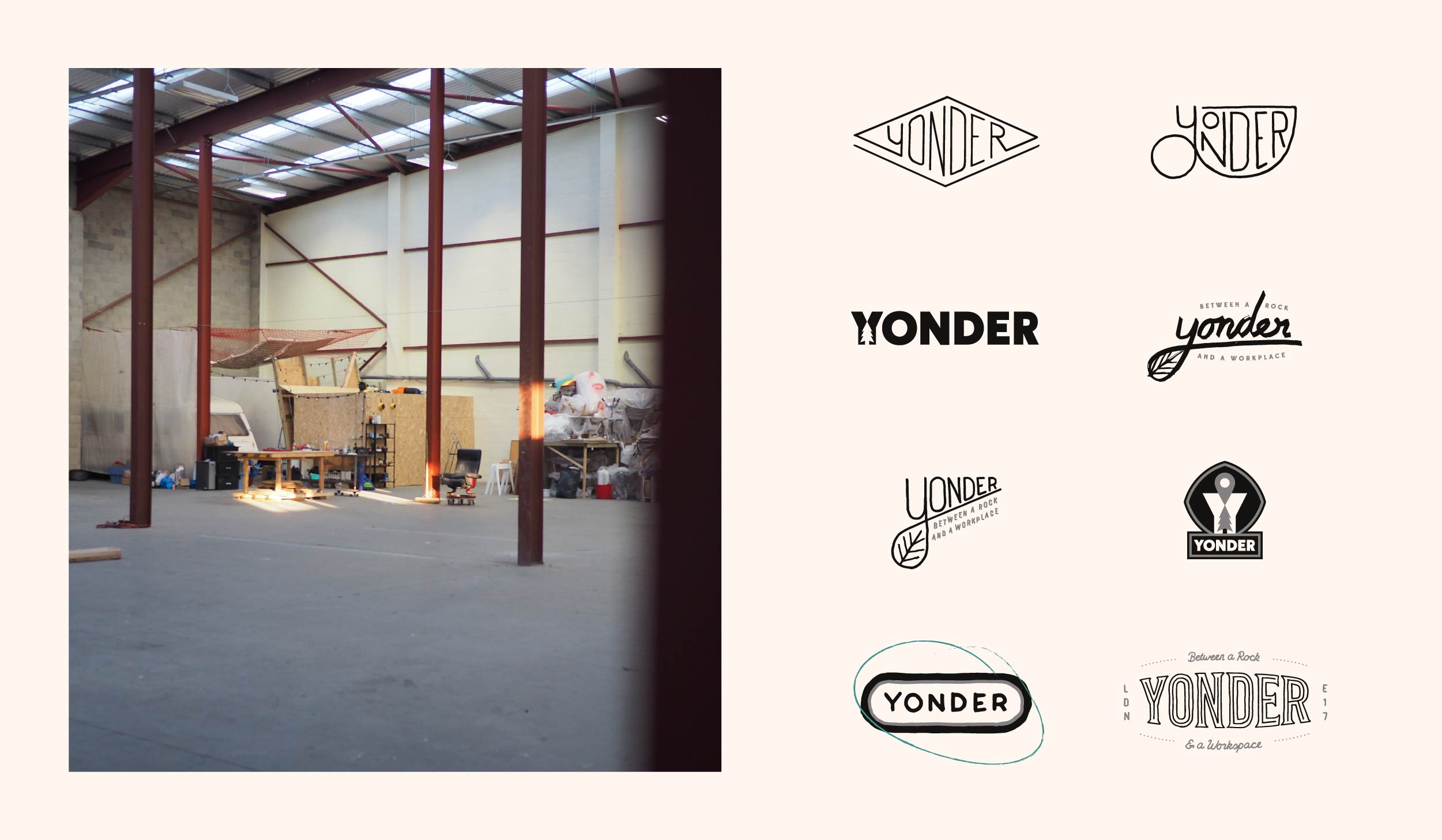 Nice Swan Creative was briefed on the concept of Yonder from the very early sparks of the idea. The aim would be to create a brand for a space with many different facets - bouldering walls, a workspace and workshop, a yoga studio, a café/bar, and a venue for events of many different kinds.